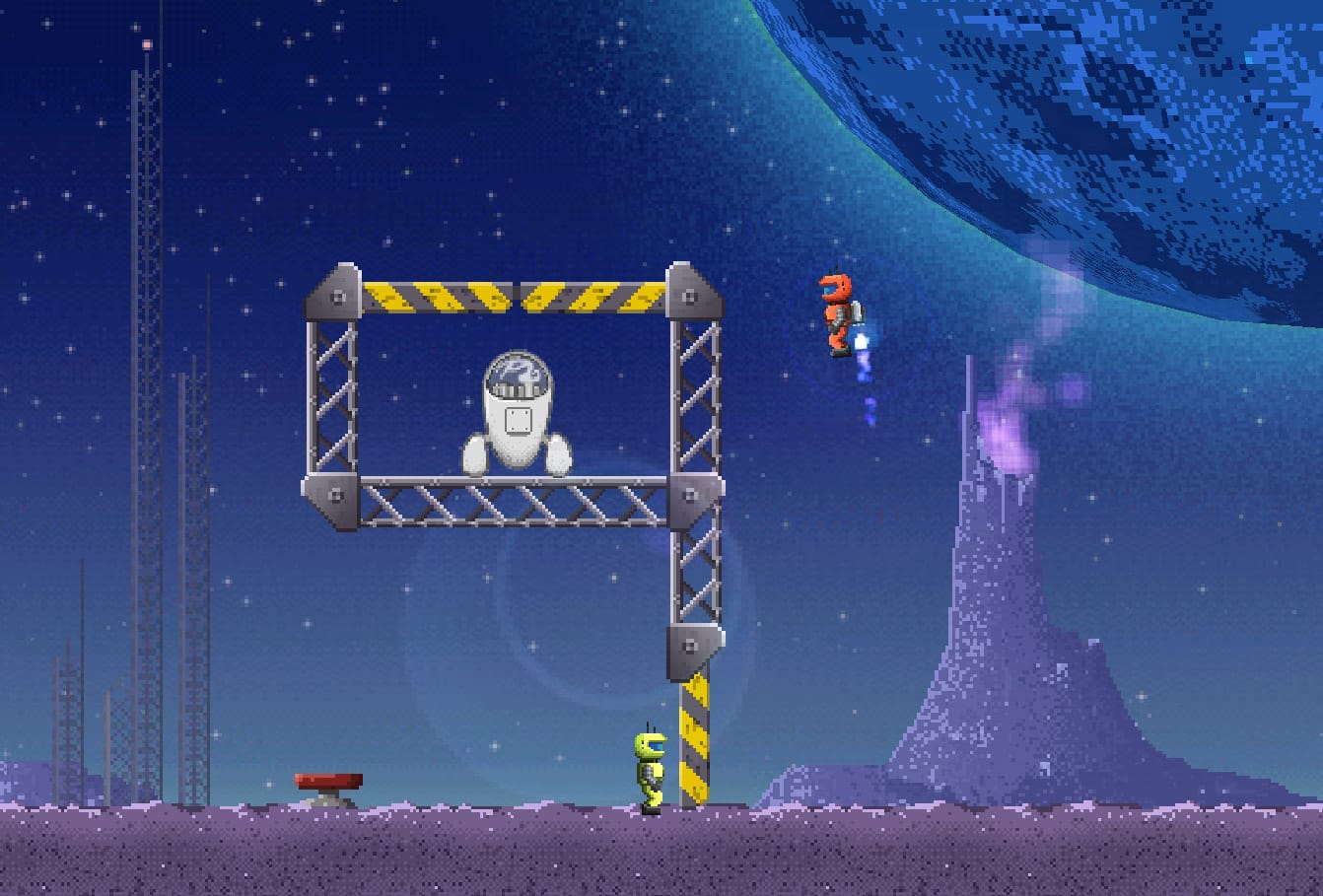 The game is inherently cooperative in nature. Though one player can easily be enticed to play alone, they will quickly learn that in this game you need the help of friends. With the help of a friend- you can score your planet bound explorer- a jet pack, which opens up access to the sky.